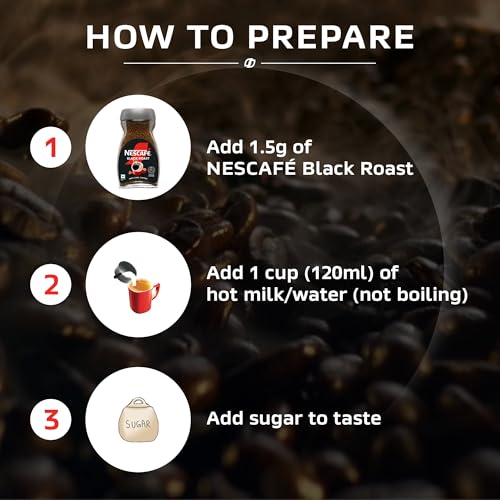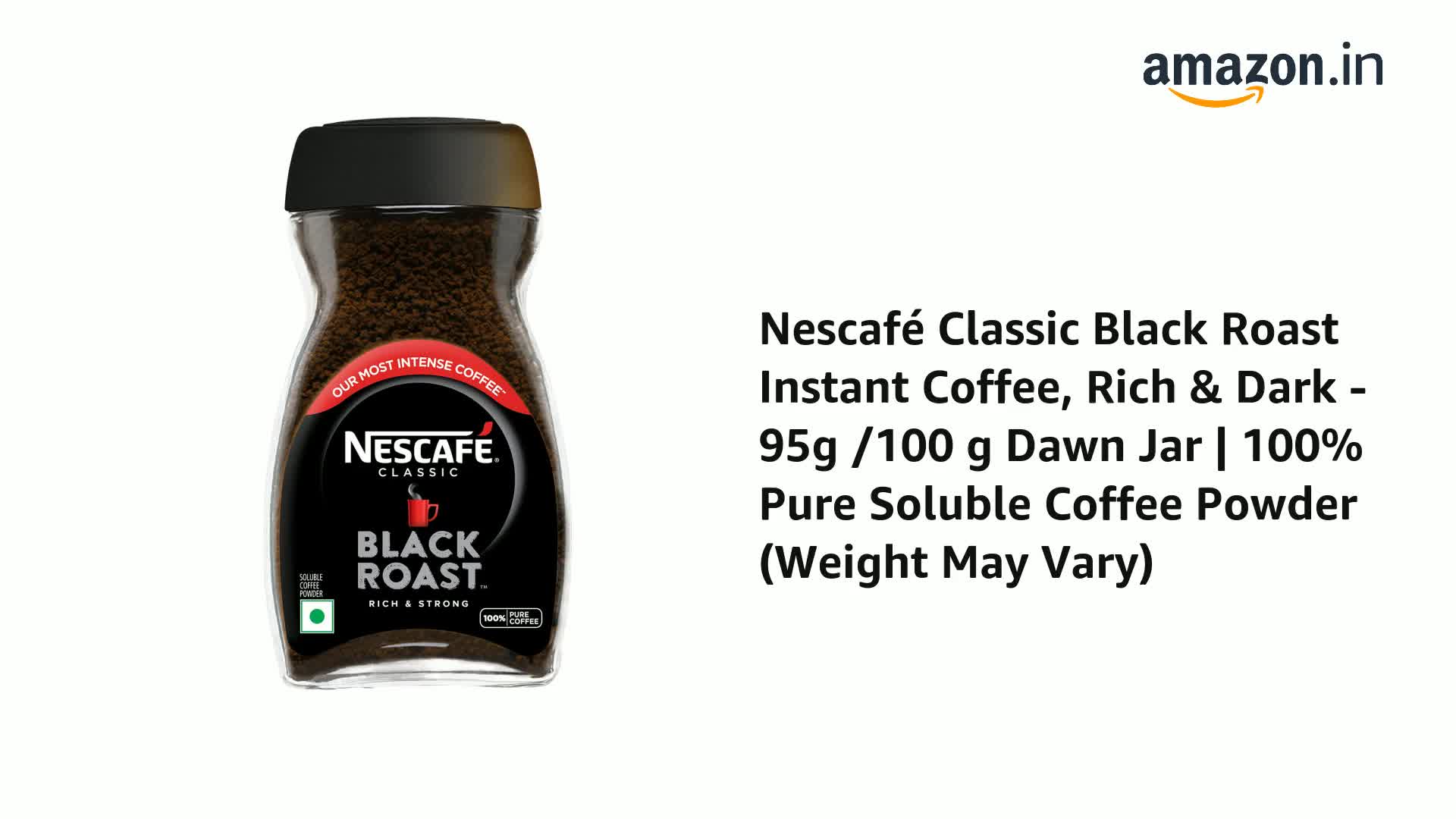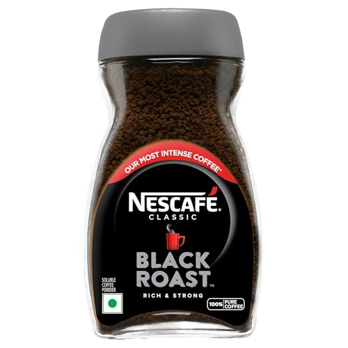 To take your coffee experiences to the next level Nescafe the worldâs favourite instant coffee brand brings forth a rich and dark aromatic coffee in the form of Nescafe Classic Black Roast. With years of coffee experience we deliver the best coffee produced by the best selection roasting and blending methods. Usage: Simply mix the black roast coffee with hot water or milk to get your own cup of premium instant rich & dark coffee right at home. Storage Recommendation: Do store the product in a cool dry and hygienic place. To ensure lasting freshness close the lid tightly after every use. Always use a dry spoon.