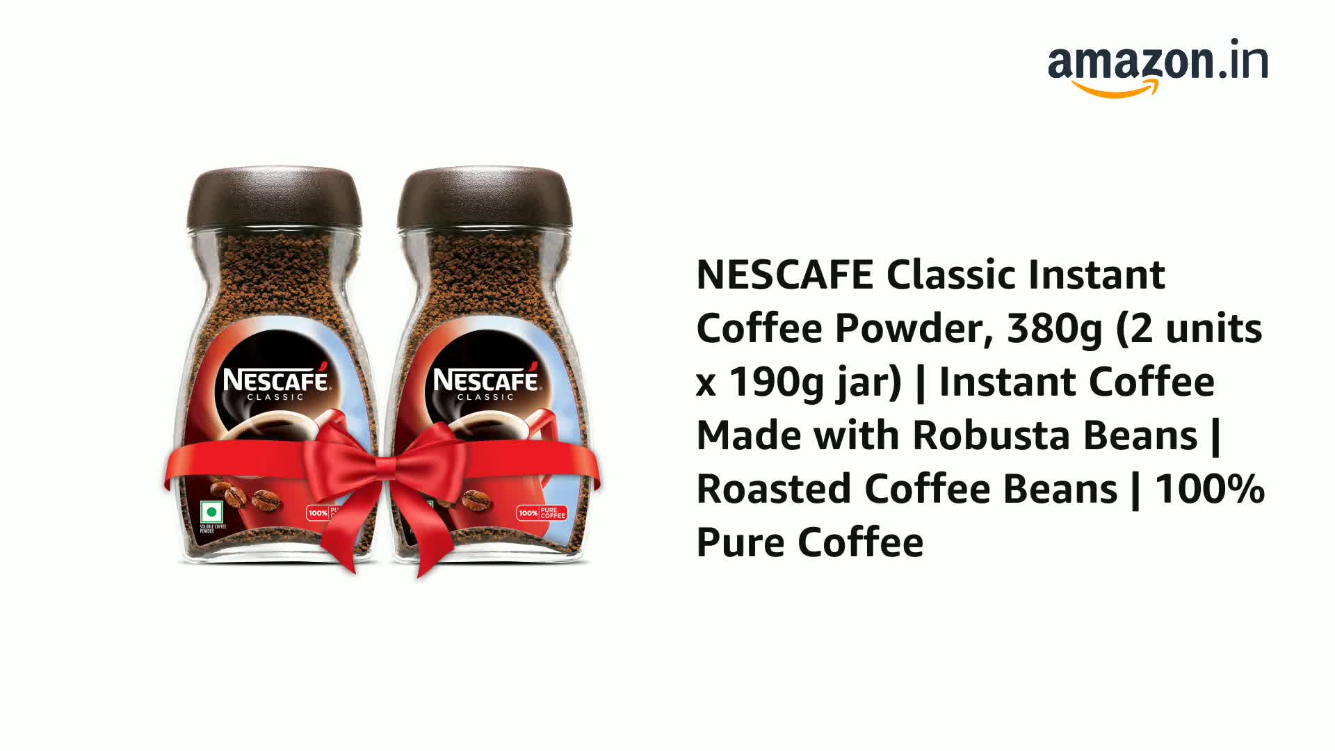 NESCAFE worldâs favourite instant coffee brand brings to you rich and aromatic coffee in the form of NESCAFE Classic Instant Coffee that will take your coffee experiences to the next level. The unmistakable flavour of NESCAFE Classic is what makes this signature coffee so loved all over the world. Start your day right with the first sip of this 100% pure coffee and let the bold taste and rich aroma of NESCAFE Classic Instant Coffee awaken your senses to new opportunities. With over 75 years of experience & working with coffee farmers to help them grow more sustainable coffee through improved crop techniques we deliver fresh coffee beans produced by the best selecting roasting and blending methods. Usage: Follow the instructions on the back of the pack and mix the coffee powder with hot or cold milk to get your instant coffee at home. Storage Recommendation: Store the product in a cool dry and hygienic place. To ensure lasting freshness close the lid tightly after every use. Always use a dry spoon. Gluten & Lactose-Free | Contains Caffeine
