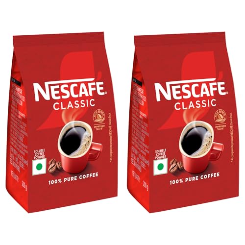Nescafe Classic Instant Coffee Powder 200 Gram Pouch | Instant Coffee Made With Robusta Beans | Roasted Coffee Beans | 100% Pure Coffee (Pack of 2)