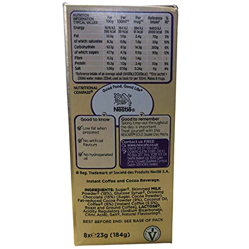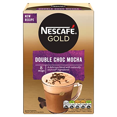 A delicious instant mocha with extra drinking chocolate A combination of coffee and drinking chocolate with velvety froth Made using fresh milk sourced from British dairy farmers We use quality natural coffee beans in every cup 8 sachets of chocolatey mocha that you can prepare in moments