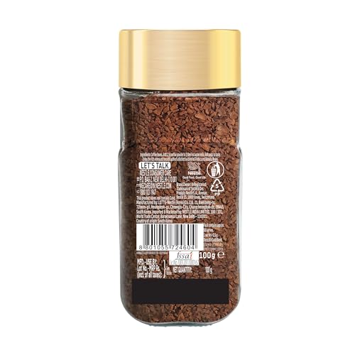 NESCAFe brings you Coffee at its Best rising above all to the highest standards set by coffee connoisseurs. This premium imported roast is artfully crafted to achieve a quality coffee experience that will awaken your senses. NESCAFe Gold is a sophisticated aromatic coffee with a rich well-rounded taste that creates delicious moments instantly. It brings out the very best from Nestle's high quality Arabica and Robusta beans to create a rich and smooth soluble instant coffee powder. NESCAFe's commitment to quality goes well beyond the product. They help coffee farmers and minimize environmental impact at every step. Usage: Prepare with boiling milk or water. Add sugar to taste. Storage: Store the product in a cool dry and hygienic place. To ensure lasting freshness close the lid tightly after every use. Always use a dry spoon.