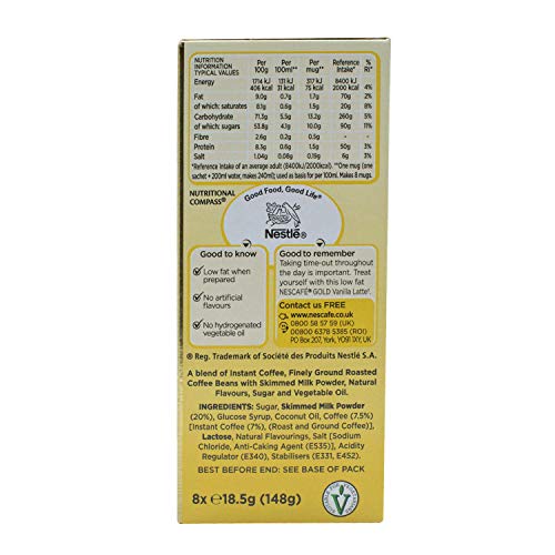 Nescafe Gold Vanilla Latte - 8 Sachets Ground Box