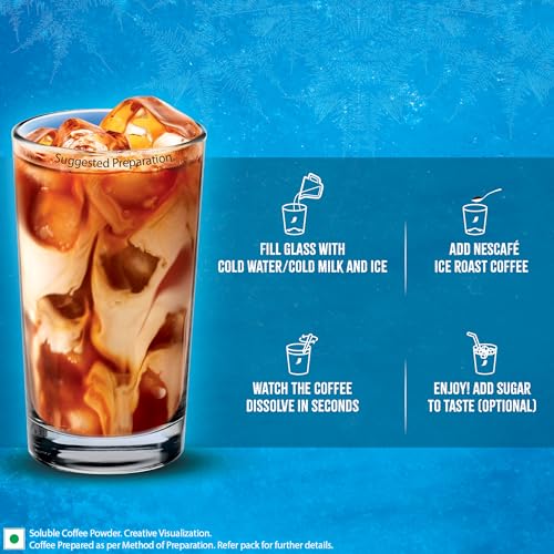 NESCAFE Ice Roast is a NEW premium instant coffee powder from NESCAFE specially crafted for Iced Coffee. It delivers smooth & rich cocoa notes delighting your taste buds like never before! This coffee is specially made to be enjoyed cold making it perfect for those who wish to enjoy a cup of cold coffee at home. NESCAFE Ice Roast dissolves easily in cold milk or water allowing you to enjoy a perfect cup of coffee in no time. It is made of high-quality coffee beans - medium roasted providing a smooth and balanced flavor profile. This instant coffee powder makes an excellent choice for any coffee lover. Add it to cold milk or water and enjoy a creamy & indulgent Iced Latte or a rich Iced Americano.