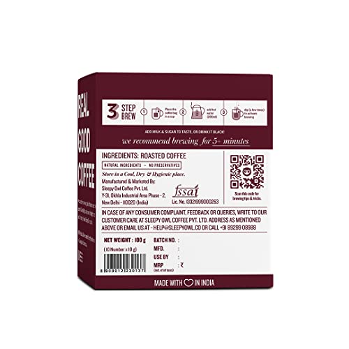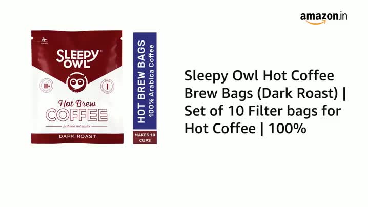 Sleepy Owl Dark Roast Ground Coffee Dip Bags | 10 Bags - Makes 10 Cups | Hot Brew - Have it as Black Coffee or With Milk | 5 Min Brew - No Equipment Needed | Travel Pack | Medium Roast | 100% Arabica