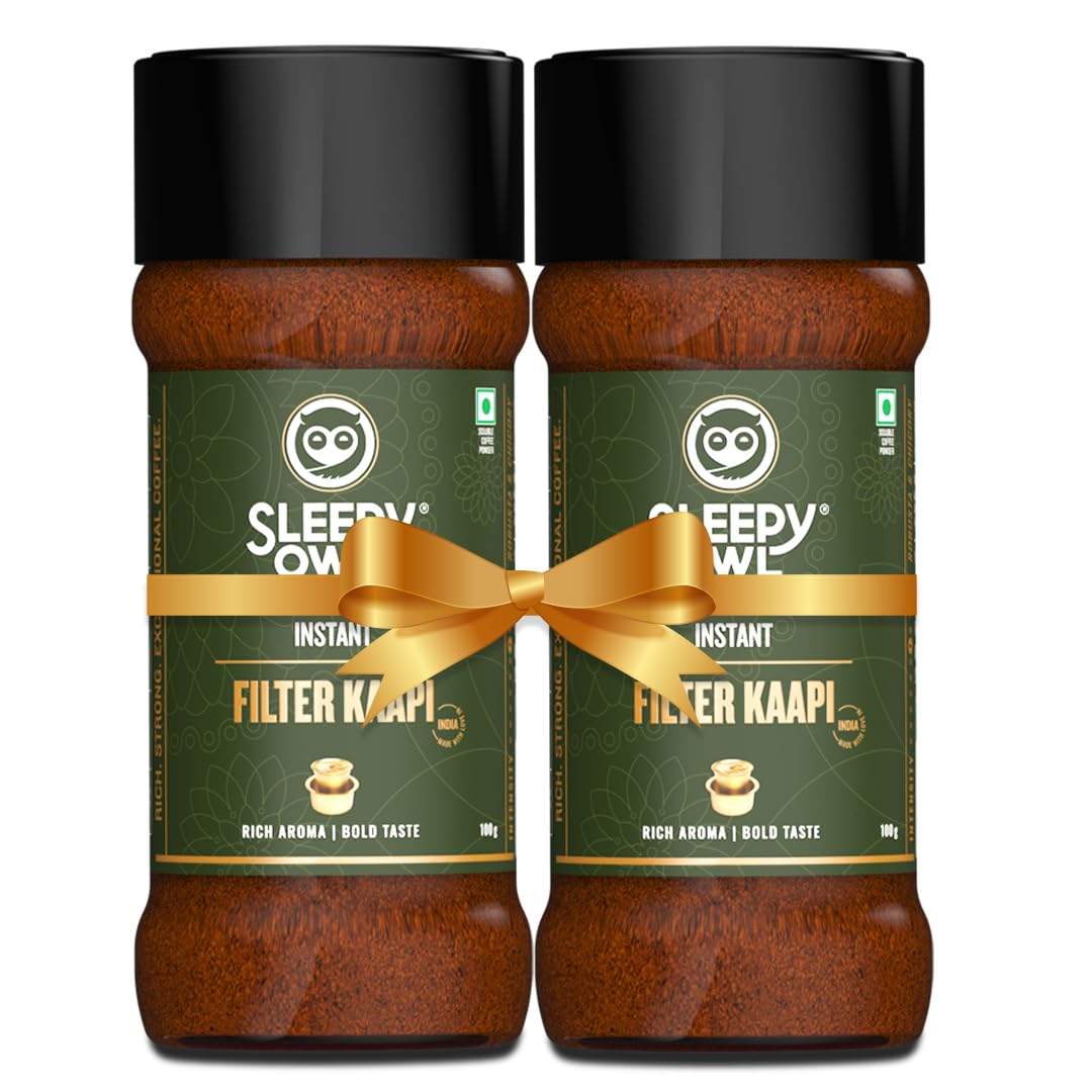 Authentic South Indian Blend: Experience the authentic taste of South Indian filter coffee with Sleepy Owl Filter Kaapi Tin Pack a set of 2 premium instant coffee tins crafted with a blend of robusta and chicory for a rich and bold flavor profile reminisc