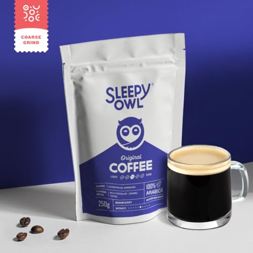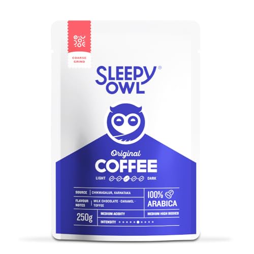 Sleepy Owl Ground Coffee for French Press | 100% Arabica Beans | Medium Roast - Original Flavour | Coarse Grind for Fresh Hot & Cold Brew | Premium Roasters | 250 gm | Chikmagalur Origin