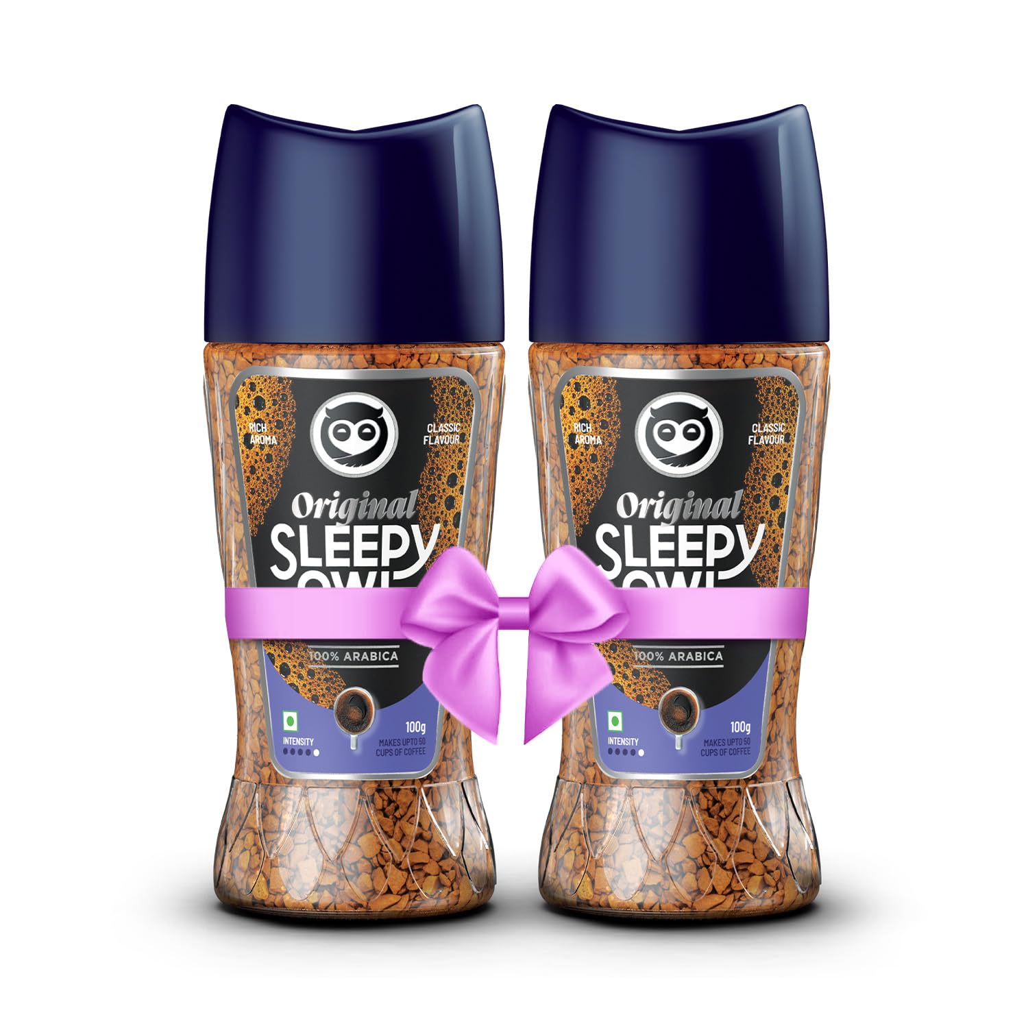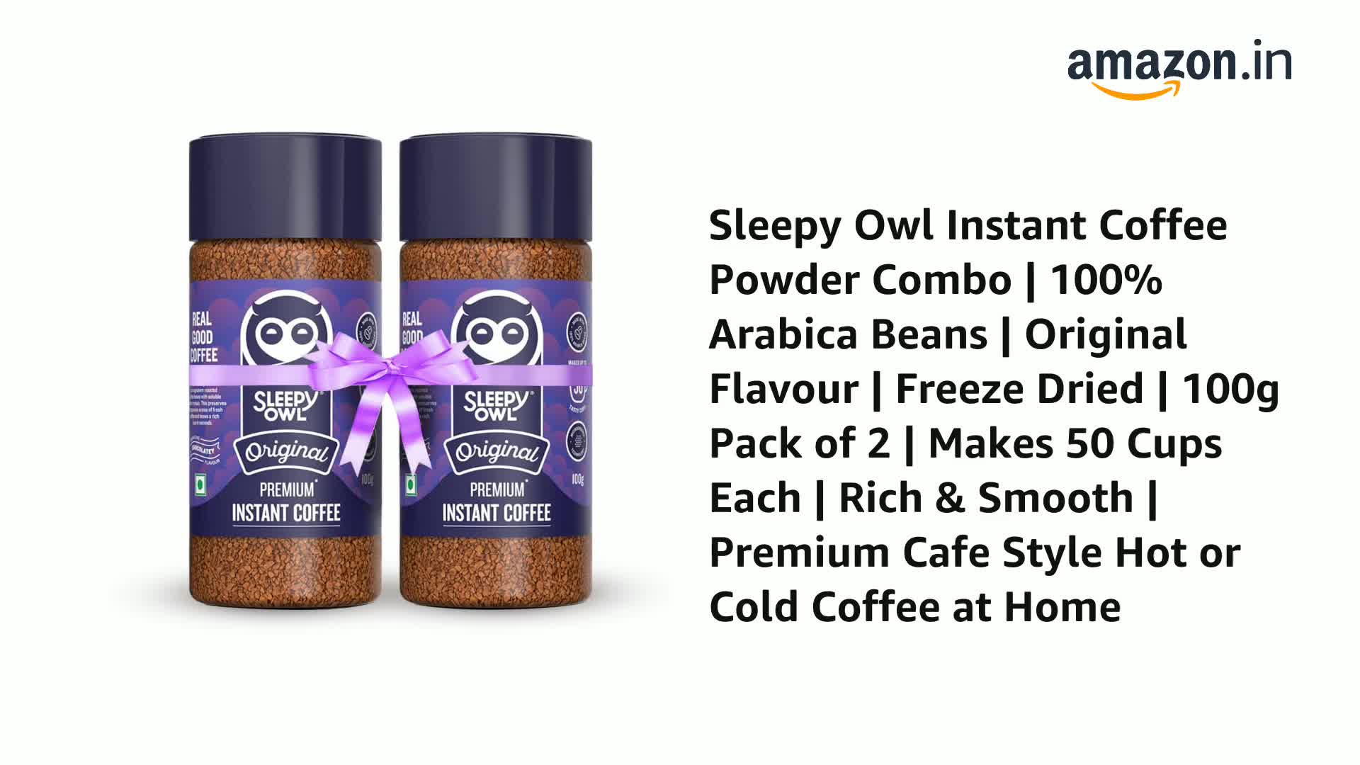 Sleepy Owl Instant Coffee Powder Jar Combo|100% Arabica Beans|Original Flavour|Freeze Dried| Pack Of 2|Makes 50 Cups Each|Rich & Smooth|Premium Cafe Style Hot Or Cold Coffee At Home1.1 Kilograms