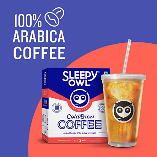 Sleepy Owl Original Cold Brew Coffee Bags | Set of 5 Packs - Makes 15 Cups | Easy 3 Step Overnight Brew - No Equipment Needed | Medium Roast | 100% Arabica | Directly Sourced From Chikmagalur