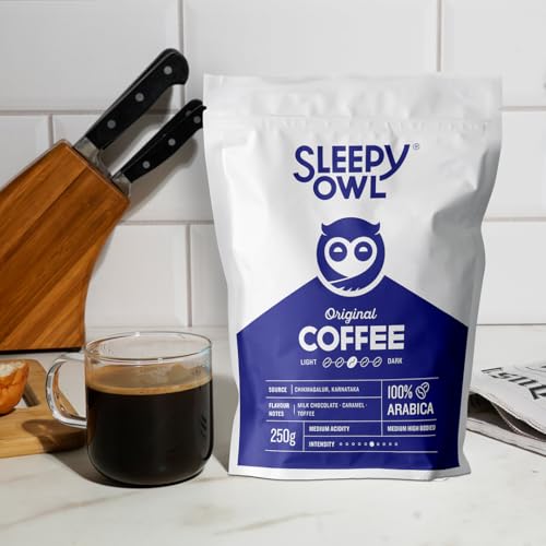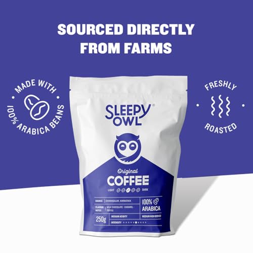 LOCALLY SOURCED 100% ARABICA COFFEE Sleepy Owl uses premium quality Grade-A Arabica beans to make its Ground Coffee. These are grown above 5300ft in Chikmagalur Karnataka. We directly source from farms ensuring that we bring you the best cup of coffee fro