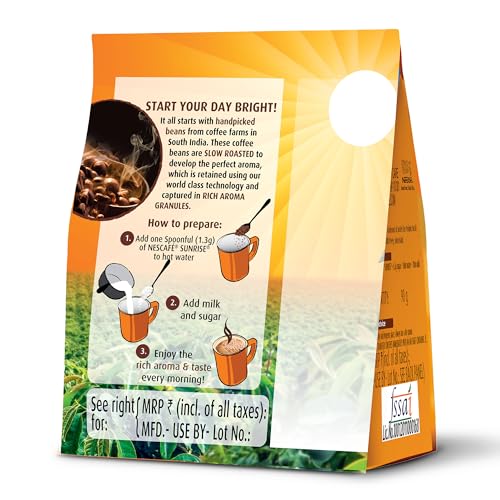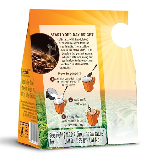 • HANDPICKED FROM THE BEST FARMS: Made with handpicked beans from coffee farms in South India NESCAFE SUNRISE offers an exquisite blend of Arabica and Robusta coffee beans