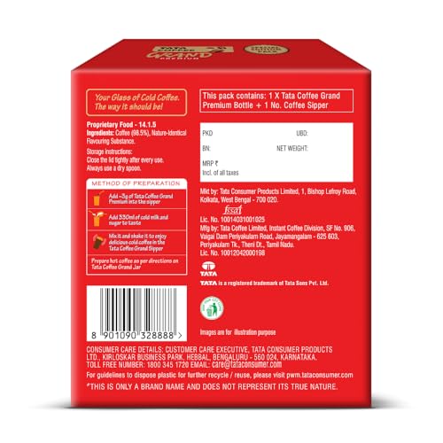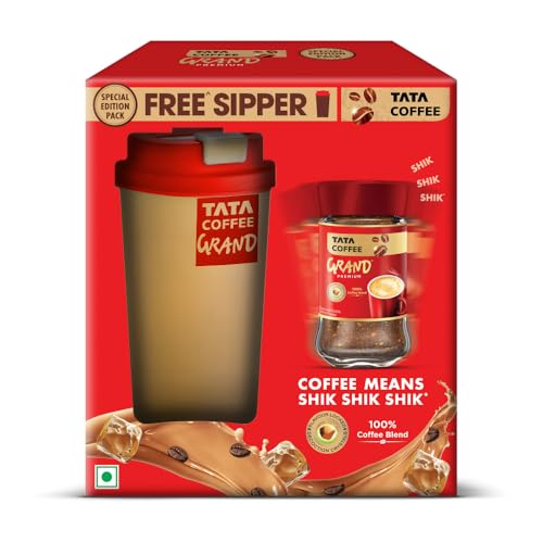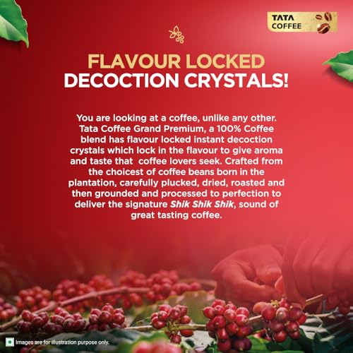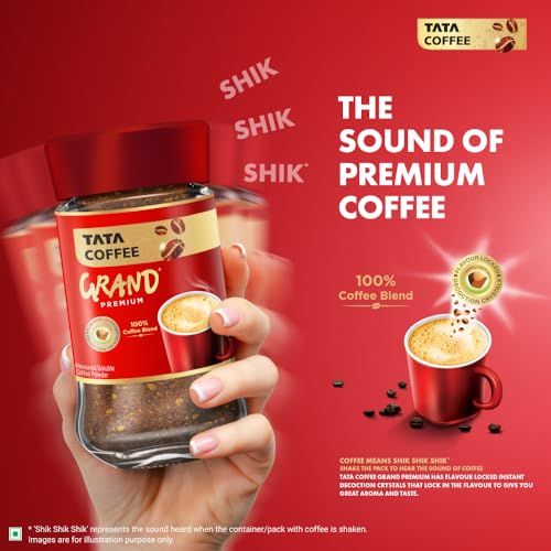 Tata Coffee Grand Premium - Unlock the freshness! To offer you a memorable taste experience Tata Coffee brings you Grand Premium instant coffee powder which leverages the deep heritage of Tata Coffee and delivers an intensely rich aroma and great taste of coffee. So give a fresh start to your mornings with a sip of your favourite coffee and be ready for an adventurous ride all day long. With 100% coffee blend and flavour-locked instant decoction crystals this Tata Coffee flavoured soluble coffee powder is roasted and processed to perfection to give you the choicest coffee every day. Usage: Add 1 teaspoon of Tata Coffee Grand Premium into a cup. Add 100 ml of hot milk and/or water. Add sugar to taste stir well to enjoy a great cup. Storage Instructions: Close the lid tightly after every use. Always use a dry spoon.