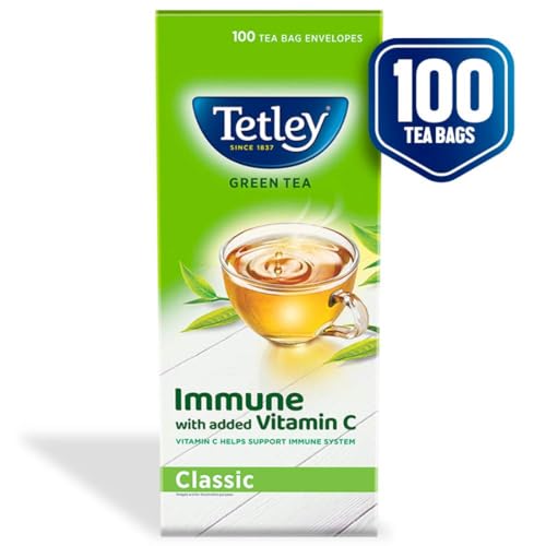 Tetley Green Tea is undoubtedly an excellent source of anti-oxidants. All the goodness now comes with immunity power of added Vitamin C with new Tetley Green Tea Immune Range. While anti-oxidants help cleanse your body from within Vitamin C helps support your bodyâs immune system. This green tea with no calories provides many more benefits like boosting fat metabolism helping to stay hydrated and helping to feel light and active. Driven by sustainability these green tea bags are 100% plastic-free and staple-free. The classic green tea contains 100% natural flavors. # A cup of green tea contains as much as 5 times (5X) the anti-oxidants in an apple. (âUSDA Database for the Flavonoid Content of Selected Foodsâ Rel 3.3 March 2018)