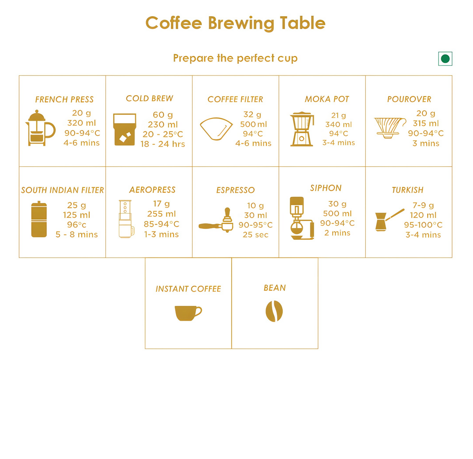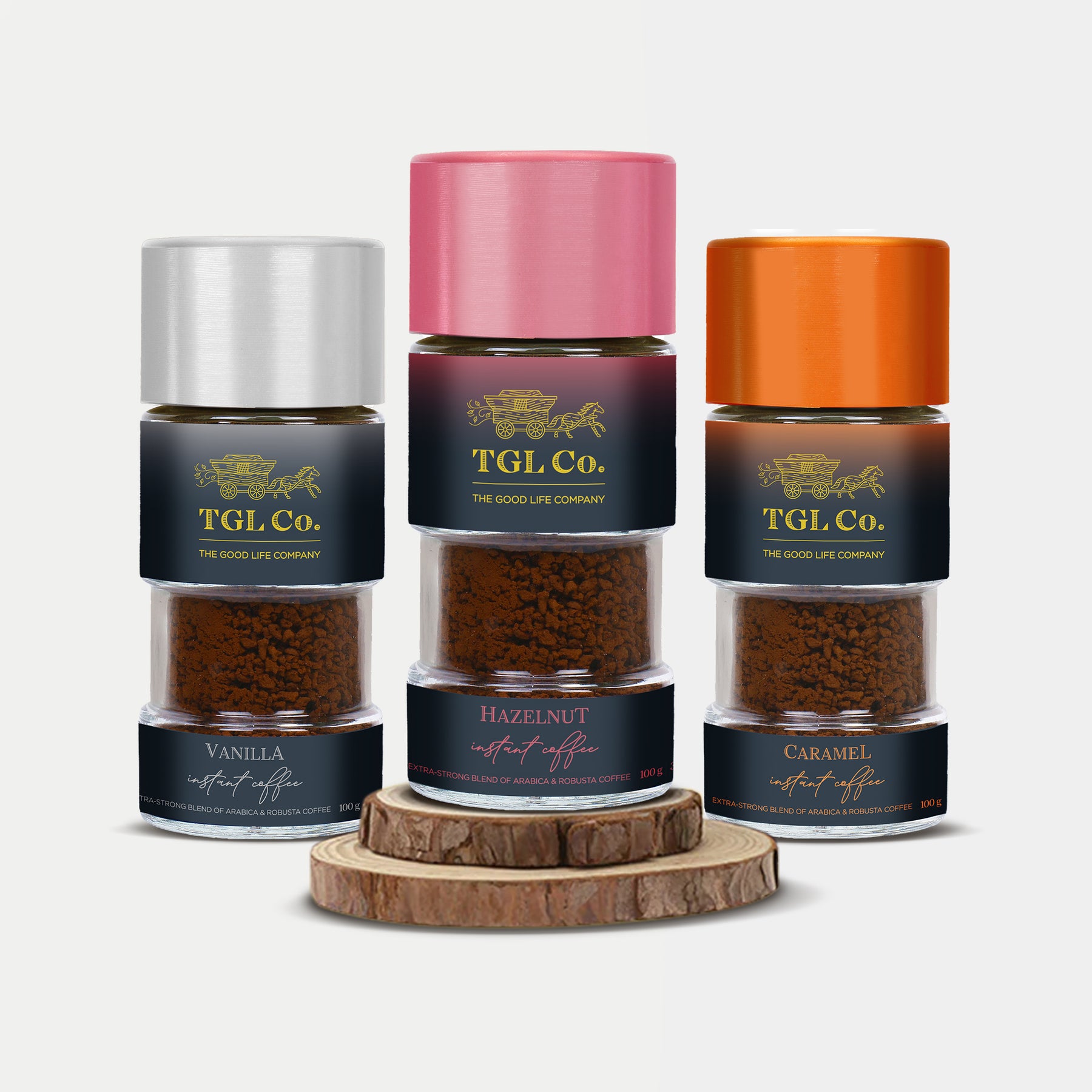 Aroma -Hazelnut: A rich aroma of top-quality coffee highlighted by the earthy, sweet undertones of hazelnut.Caramel: A rich aroma of top-quality coffee complemented by the creamy, decadent notes of caramel.Vanilla: A rich aroma of top-quality coffee balanced with the fresh, classic scent of vanilla.Tasting Notes -Hazelnut: A smooth consistency and a subtle interwoven flavour of hazelnut with the aromatic notes of coffee.Caramel: The sweet and smooth notes of vanilla mixed with the familiar bitter-sweet flavours of coffee.Vanilla: The sweet and smooth notes of vanilla mixed with the familiar bitter-sweet flavours of coffee.Caffeine - ModerateBest Consumed - Hot or iced, any time of the day!More information: All three flavours are versatile and can be enjoyed hot or iced! They work well with many coffee-based beverages and can be paired with a variety of ingredients.