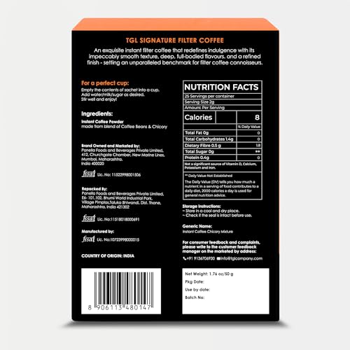 TGL Co. Signature Instant Filter Coffee Sticks | Premium Instant Coffee Sachets | 25 Sachets | Coffee-Chicory Blend | Boost Energy | No Artificial Flavour