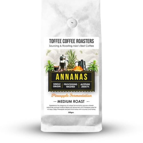 Toffee Coffee Roasters | Annanas: PineApple Fermented Coffee | As Seen On Shark Tank | 100% Arabica | Medium Roast | Coffee Notes: Fruity and Pine Apple (French Press 250gm)