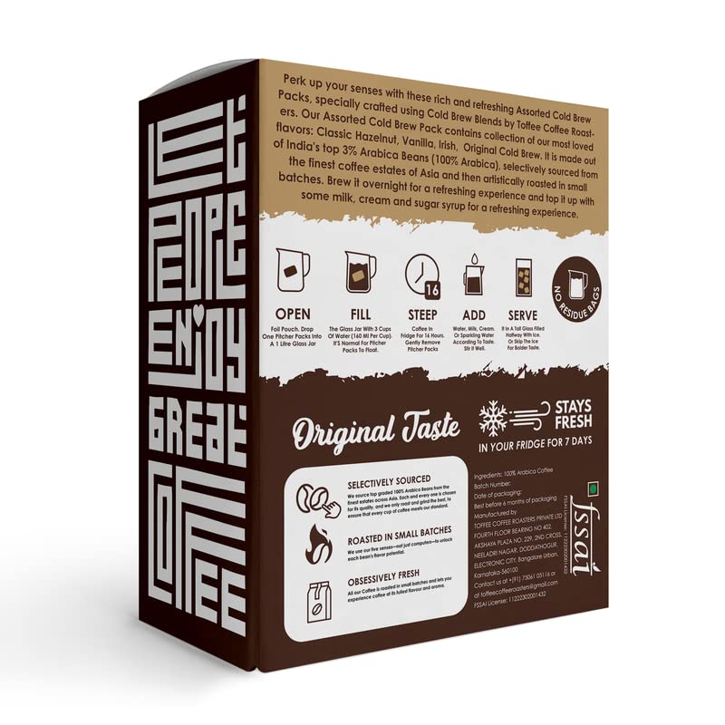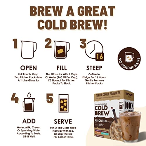 Toffee Coffee Roasters | Assorted Cold Brew Bags | Easy Brew Coffee | Cold Brew Coffee | Pack of 4 Bags | 100% Arabica Coffee | Makes 16 Cups of Coffee