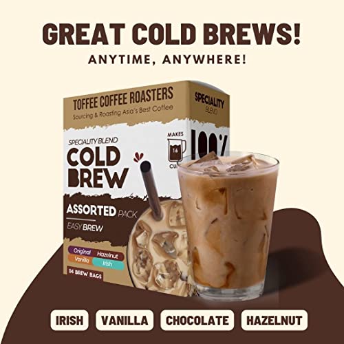 Toffee Coffee Roasters | Assorted Cold Brew Bags | Free Mason Jar | Easy Brew Coffee | Cold Brew Coffee | Pack of 8 Bags | 100% Arabica Coffee | Makes 32 Cups of Coffee