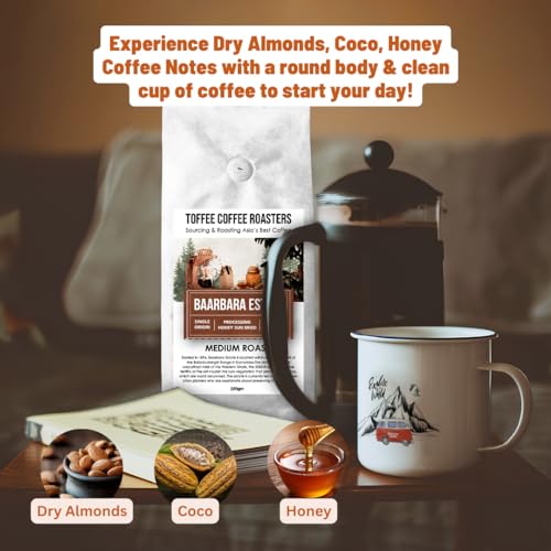 Toffee Coffee Roasters | Baarbara Estate Single Origin Arabica Light to Medium Roast | Notes: Dry Almond Coco and Honey | Grind: French Press | Freshly Roasted - 250 gms