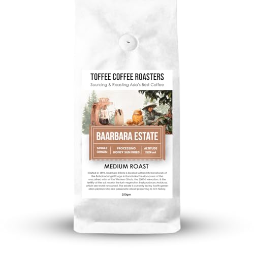 Toffee Coffee Roasters | Baarbara Estate Coffee | Single Origin Arabica Light to Medium Roast Coffee Notes: Dry Almond Coco and Honey Grind: Whole Beans Freshly Roasted Coffee - 250 gms