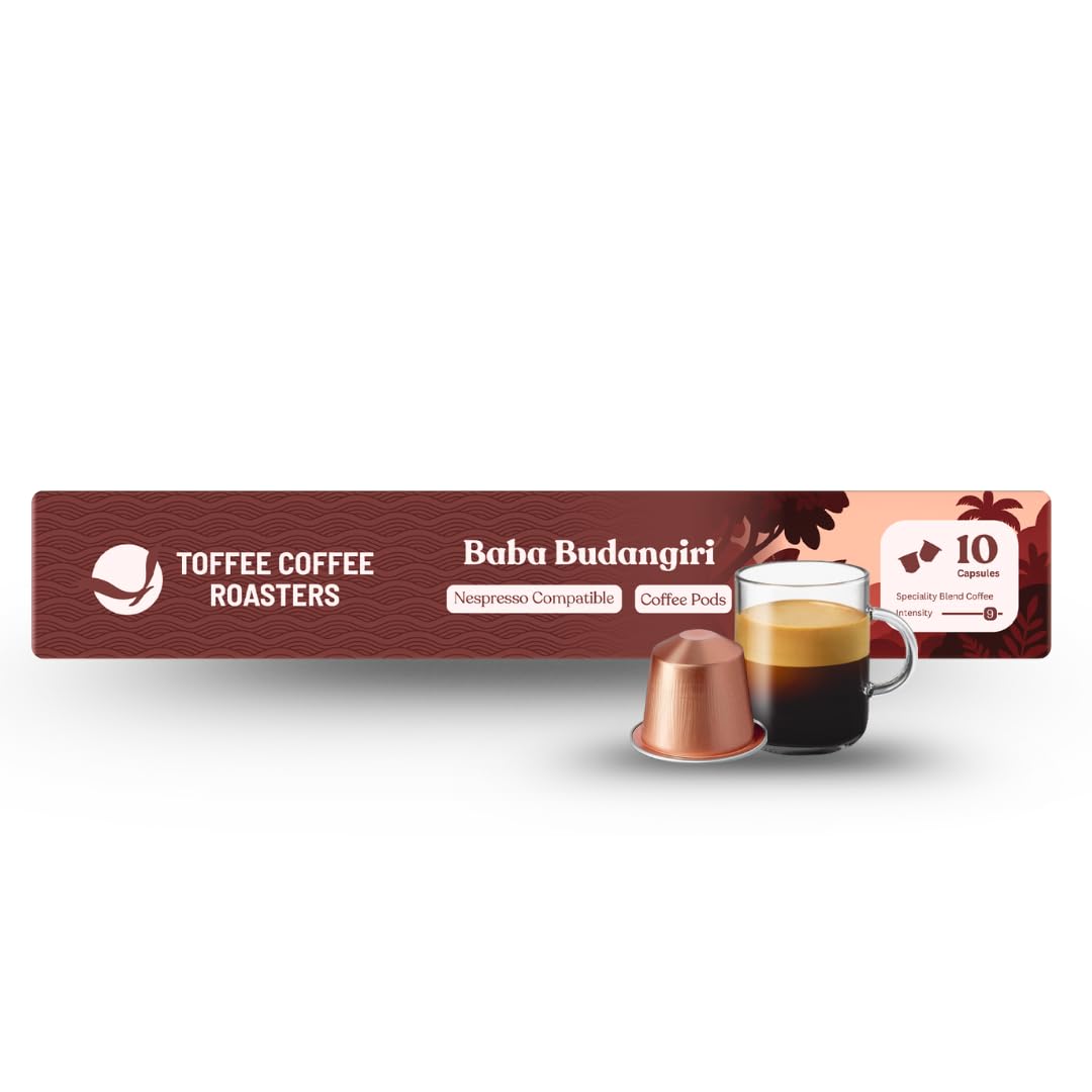 Toffee Coffee Roasters | Baba Budangiri Coffee Capsules | Nespresso Compatible Pods| 100% Speciality Grade | Notes: Nutty & Chocolaty | Roast: Medium Dark | Pack of 4 (40 Capsules) |