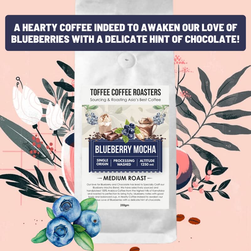 Toffee Coffee Roasters|Blueberry Mocha Coffee Bag|Speciality Blend Grounded Coffee|100% Arabica Medium Roast|Coffee Notes: Fruity & Blueberry Notes|Grind: French Press|Freshly Roasted Coffee|250 G