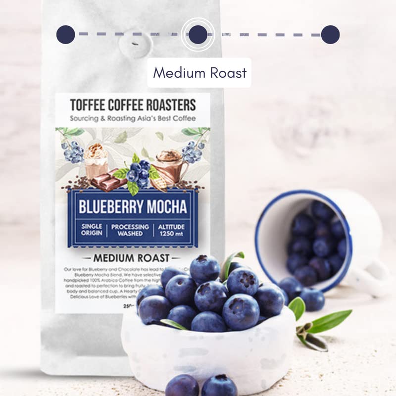 Toffee Coffee Roasters | Blueberry Mocha Coffee | Speciality Blend Grounded Coffee | 100% Arabica Medium Roast | Coffee Notes: Fruity & Blueberry Notes | Grind: Pour Over| Freshly Roasted Coffee | 500 g