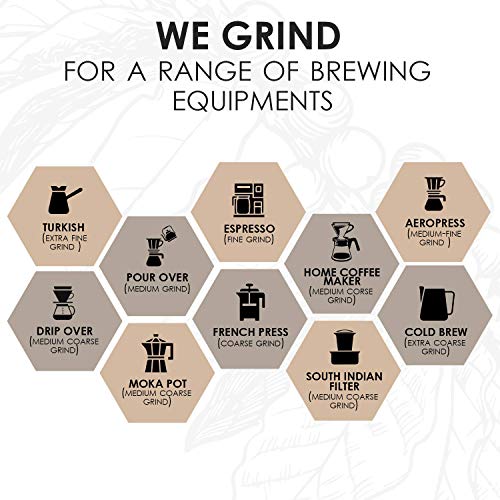 • You can make it with wide range of equipments we grind these rich coffee beans as per your equipment having various options to select. Enjoy rich & fresh taste of coffee picked & purchased directly from farmers of some rare and oldest coffee estates of Ka