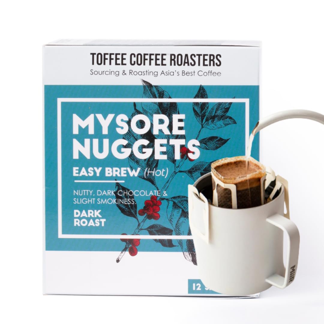 Toffee Coffee Roasters | Easy Brew (Hot Brew) Coffee | Mysore Nuggets | Pack of 18 | Easy to Brew Pour Over Grounded Coffee | Dark Roast | Coffee Notes: Dark Chocolaty Nutty & Woody?