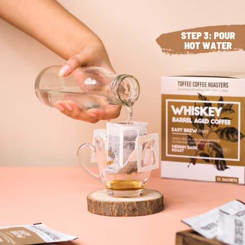 Toffee Coffee Roasters | Easy Brew (Hot Brew) Coffee | Single Malt Whiskey Barrel Aged Grounded Coffee | Pack of 8 Sachets | No Equipment Required | Medium Dark Roast |Notes: Fine Malt & Green Apple