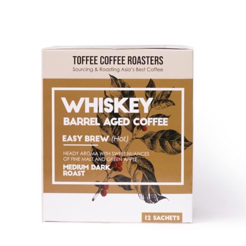 HomeGroceryBeveragesCoffeeToffee Coffee Roasters | Easy Brew (Hot Brew) Coffee | Single Malt Whiskey Barrel Aged Grounded Coffee | Pack of 8 Sachets | No Equipment Required | Medium Dark Roast |Notes: Fine Malt & Green Apple