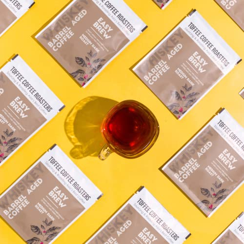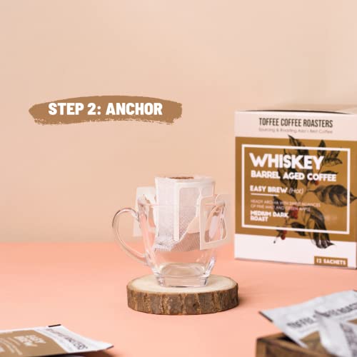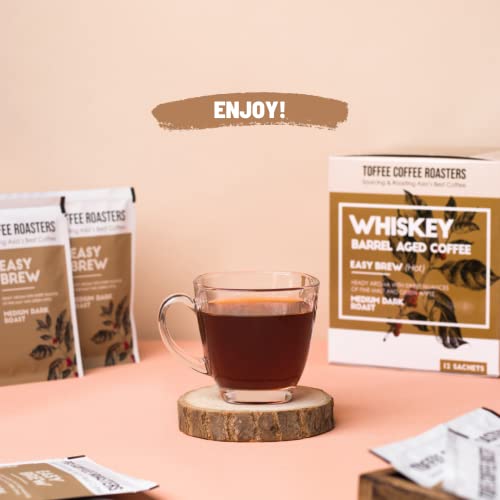 Toffee Coffee Roasters | Easy Brew (Hot Brew) Coffee | Single Malt Whiskey Barrel Aged Grounded Coffee | Pack of 8 Sachets | No Equipment Required | Medium Dark Roast |Notes: Fine Malt & Green Apple