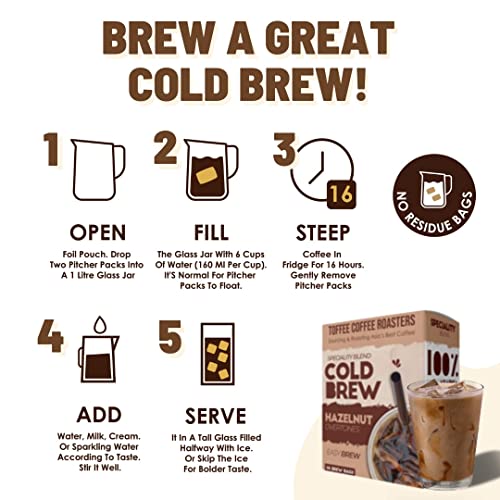 Toffee Coffee Roasters | Hazelnut Cold Brew Coffee | As Seen On Shark Tank | Set of 8 Packs | Makes 32 Cups of Coffee | 3 Step Brew - No Equipment Required | 100% Arabica Coffee