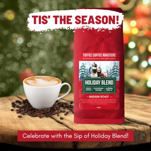 Toffee Coffee Roasters | Holiday Blend Coffee | Arabica Freshly Medium Roast | Grounded Coffee Notes: Bittersweet Pale Honey Sift and Layered | Grind: Espresso| Freshly Roasted | 1000 gm