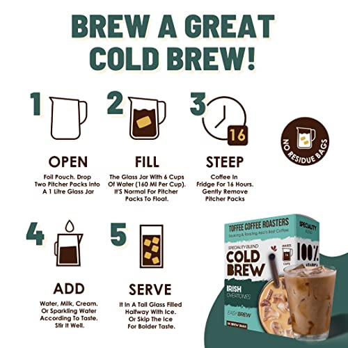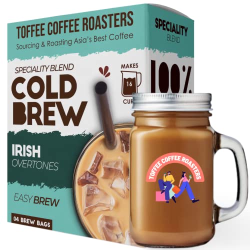 Toffee Coffee Roasters | Irish Cold Brew Bags | Free Mason Jar | Easy Brew Coffee | Cold Brew Coffee | Pack of 8 Bags | 100% Arabica Grounded Coffee | Makes 32 Cups of Coffee