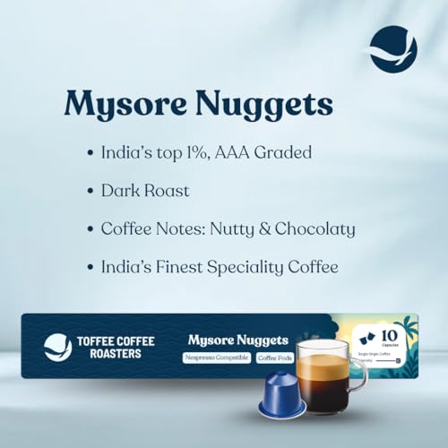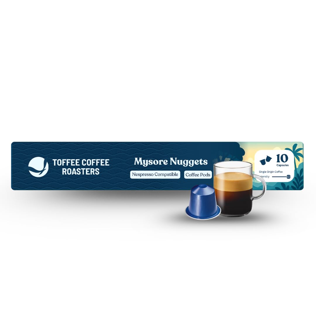 Toffee Coffee Roasters |Mysore Nuggets Coffee Pods | Nespresso Compatible |AAA Speciality Grade| Notes: Nutty & Dark Chocolaty | Roast: Dark| Pack of 2 (20 Capsules) | 110gms