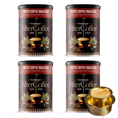 HomeGroceryBeveragesCoffeeToffee Coffee Roasters | Pack of 4 (200g Each) - 800 gm South Indian Filter Coffee| As Seen On Shark Tank | Specialty Blend| Traditional Dark Roast Signature Filter Grounded Coffee