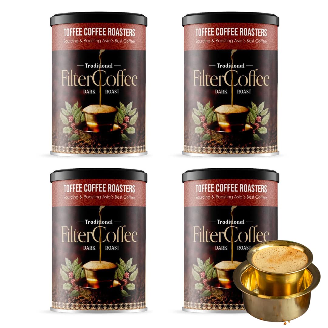 Toffee Coffee Roasters | Pack of 4 (200g Each) - 800 gm South Indian Filter Coffee| As Seen On Shark Tank | Specialty Blend| Traditional Dark Roast Signature Filter Grounded Coffee