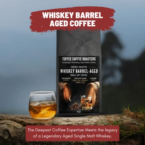 Toffee Coffee Roasters | Single Malt Whiskey Barrel Aged Coffee | 100% Arabica | Medium Dark Roast | Coffee Notes: Fine Malt and Green Apple | Grind: Moka Pot| Freshly Roasted | 250 gm