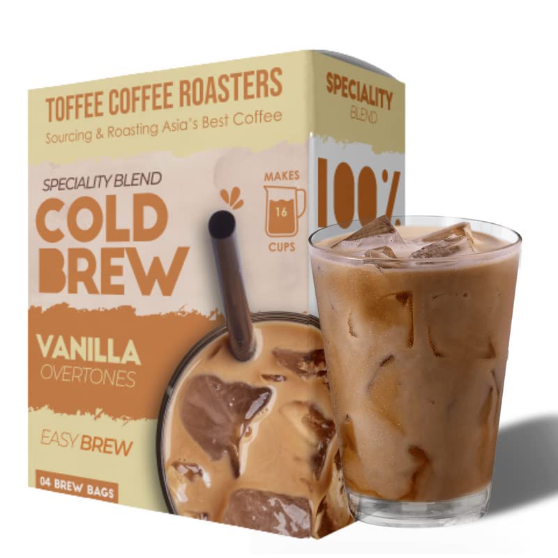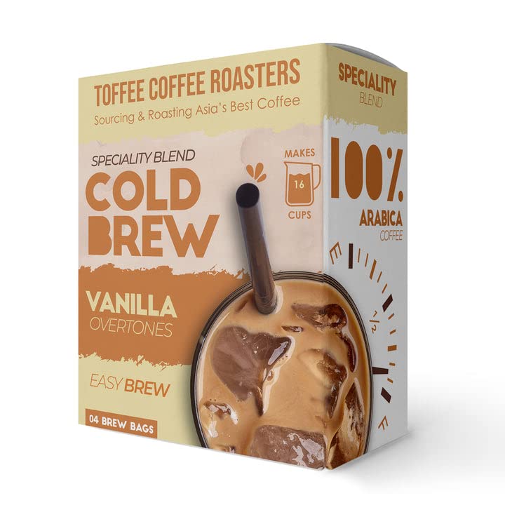 Toffee Coffee Roasters | Vanilla Cold Brew Bags | Free Mason Jar | Easy Brew Coffee | Cold Brew Grounded Coffee | Pack of 8 Bags | 100% Arabica Coffee | Makes 32 Cups of Coffee