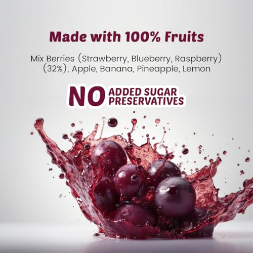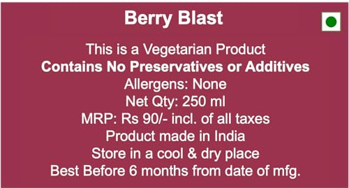 • This thick and pulpy juice is made using the choicest of berries well balanced with healthy tropical fruits. This juice is NOT made from concentrate thus making it a must have refresher during any season.
