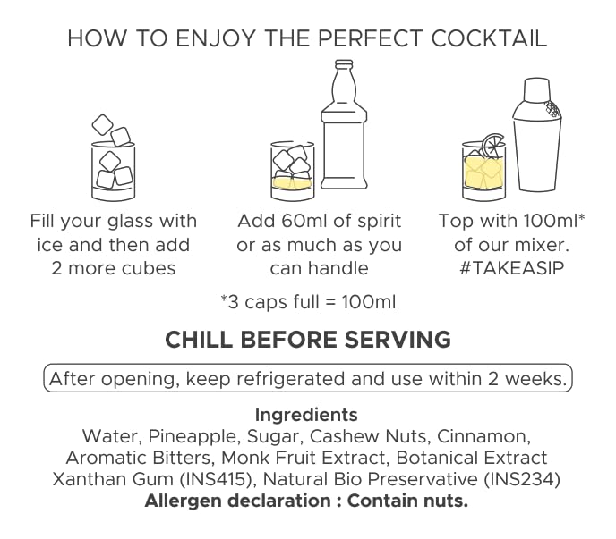 This one is an ode to all the Goa plans that never made it out of the group chat. We're bringing the feeling of goa to you in a bottle! A decadent mouthfeel from the cashews the freshness of pineapples and the slight hit of cinnamon make this drink the perfect sip to set the mood this festive season. When you take a sip of the drink you drift into a happy vacation mood and your spirits are bound to soar!