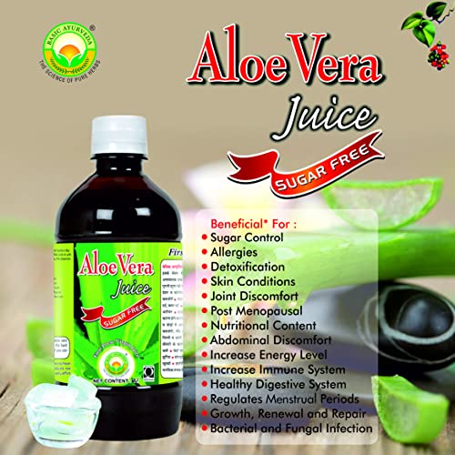 • Basic Ayurveda's Aloe Vera Juice is a herbal classical ayurvedic formulation accurately composed that contains aloe vera pulp liquid extracts and fruit juice concentrated sugar-free. It is an extensive combination of vitamins and nutrients made from pulp