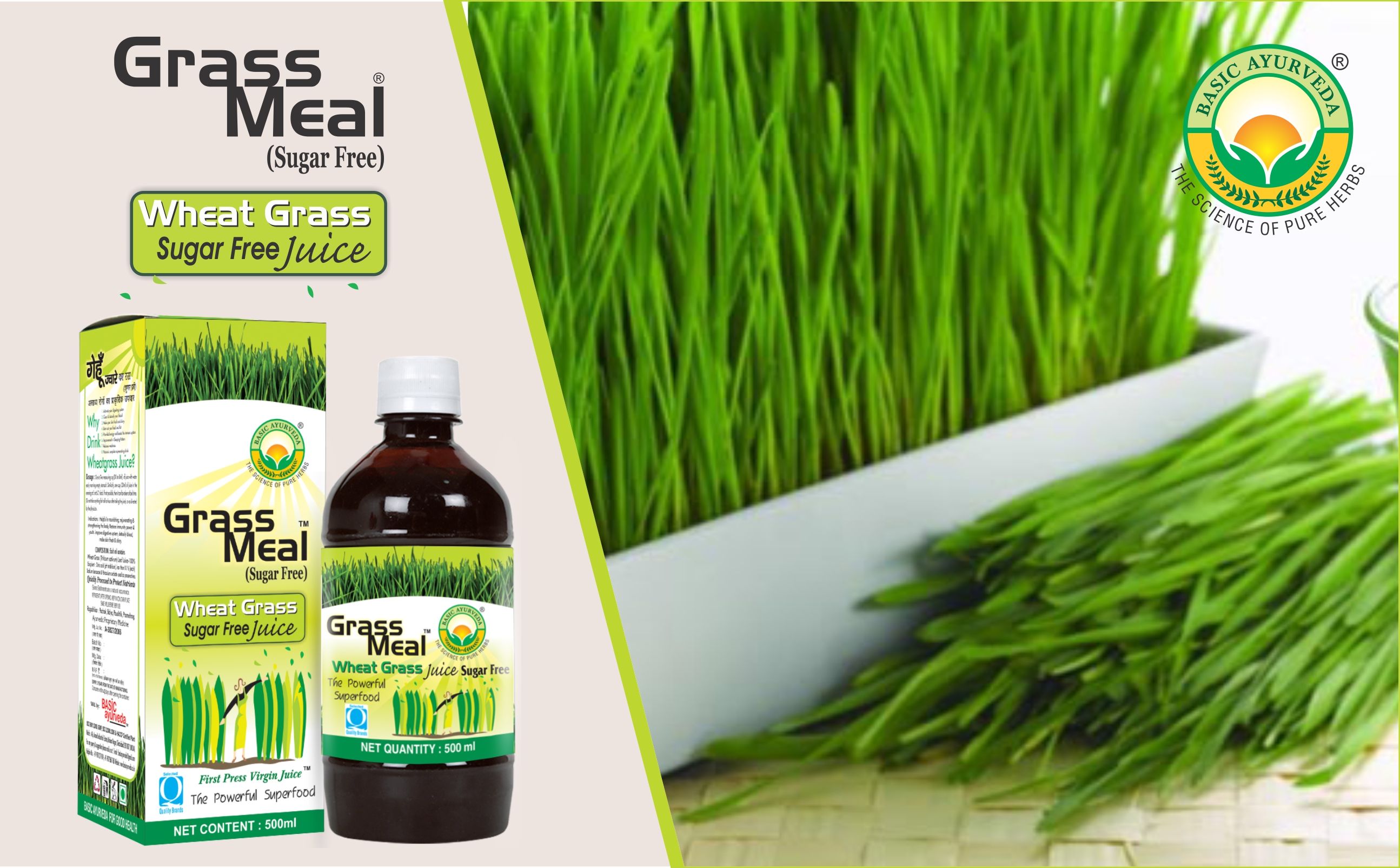 Basic Ayurveda Grass Meal (Wheatgrass) Juice 1000ml | Sugar-Free Detox Drink to Boost Immunity & Digestion