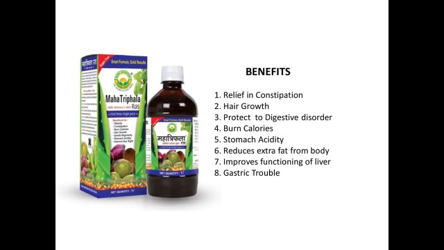 • Maha Triphala Ras is a natural laxative tonic that is useful in improving body immunity purifying blood and digestion and also useful in liver problems. It strengthens the roots of hairs and promotes growth.