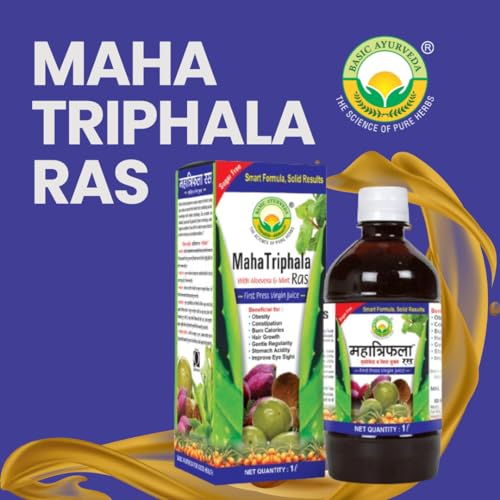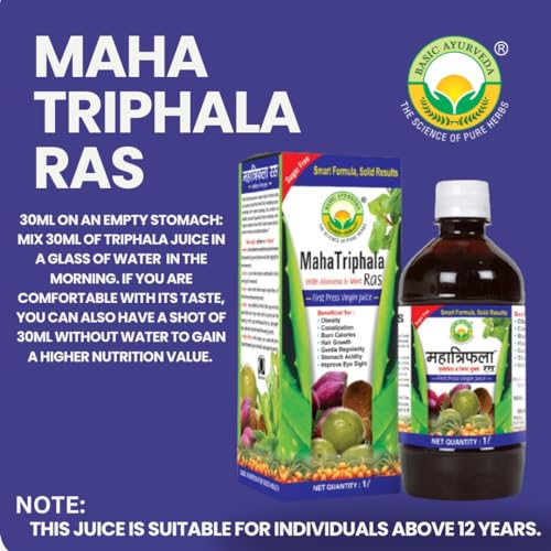 • Basic Ayurveda Maha Triphala Ras juice is an excellent composition of equally mixed natural herbs-based Aloe vera mint harad baheda and amla (Indian Gooseberry) extracts. It is the richest source of iron and vitamins C and lots of other vitamins thus it p