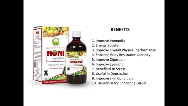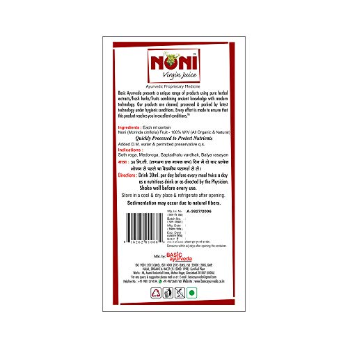 • Basic Ayurveda's Noni Virgin Juice is one of the healthiest all-natural drinks in existence. This healthy and natural juice will boost your immune system increase your energy levels and improve your overall health performance. It is gives better strength