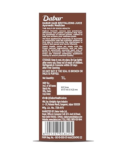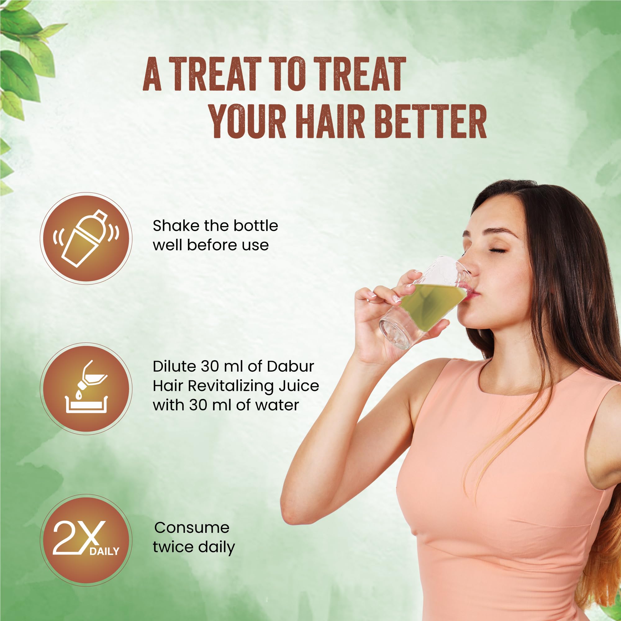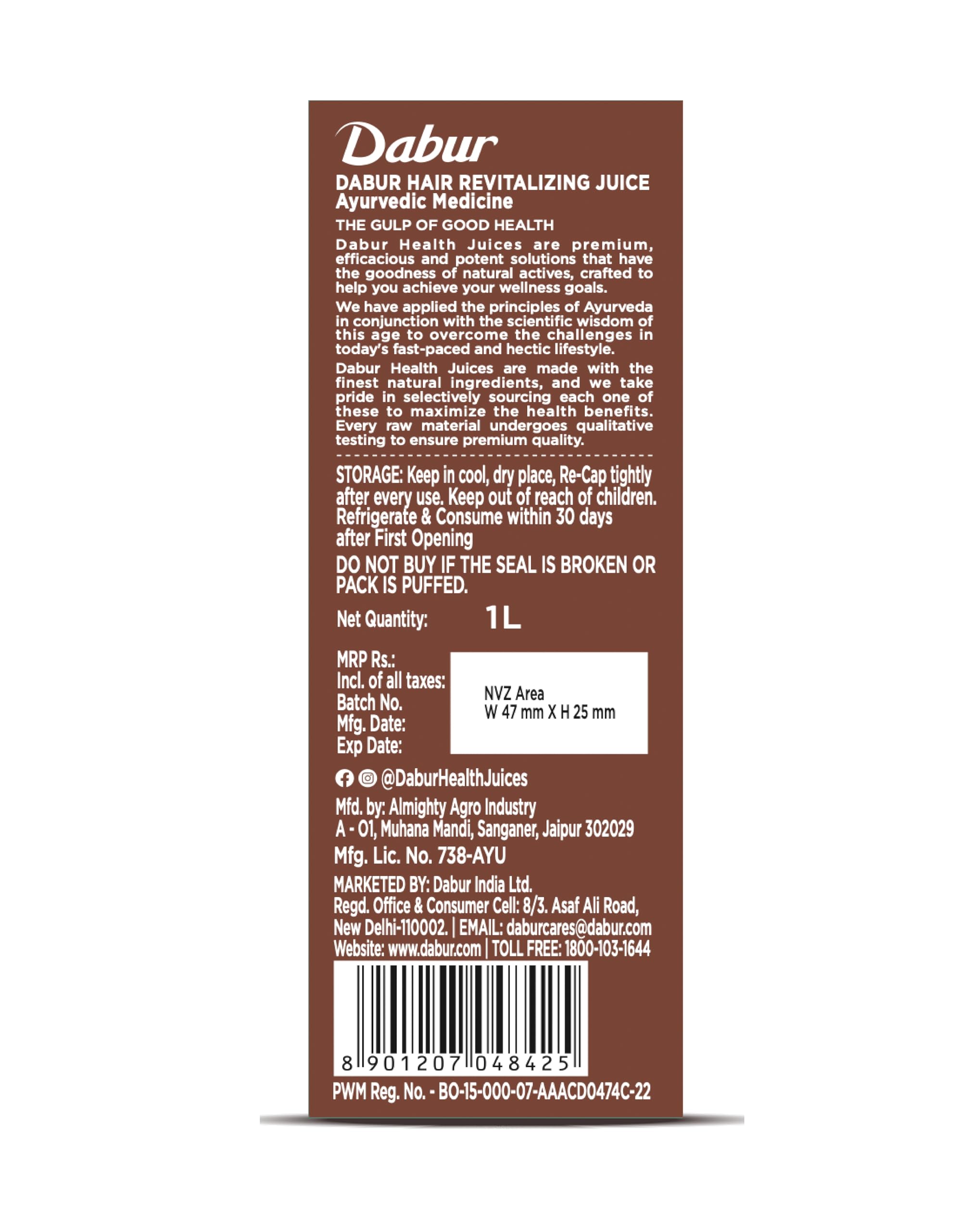 Dabur Hair Revitalizing Juice - 1L | Hair Care Juice for Hair Growth & Hair Fall Control | Enriched with 5+ Powerful Ingredients | No Artificial Colors, Flavours & Sugars
