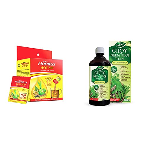 HomeGroceryBeveragesJuicesDabur Honitus Hot Sip Ayurvedic Kadha (Pack of 30 Sachets) (120g) & DABUR Giloy Neem Juice with Tulsi: 100% Ayurvedic Health Juice -1L