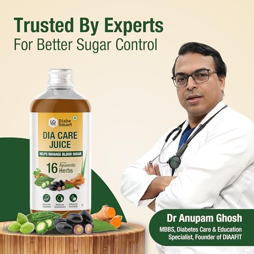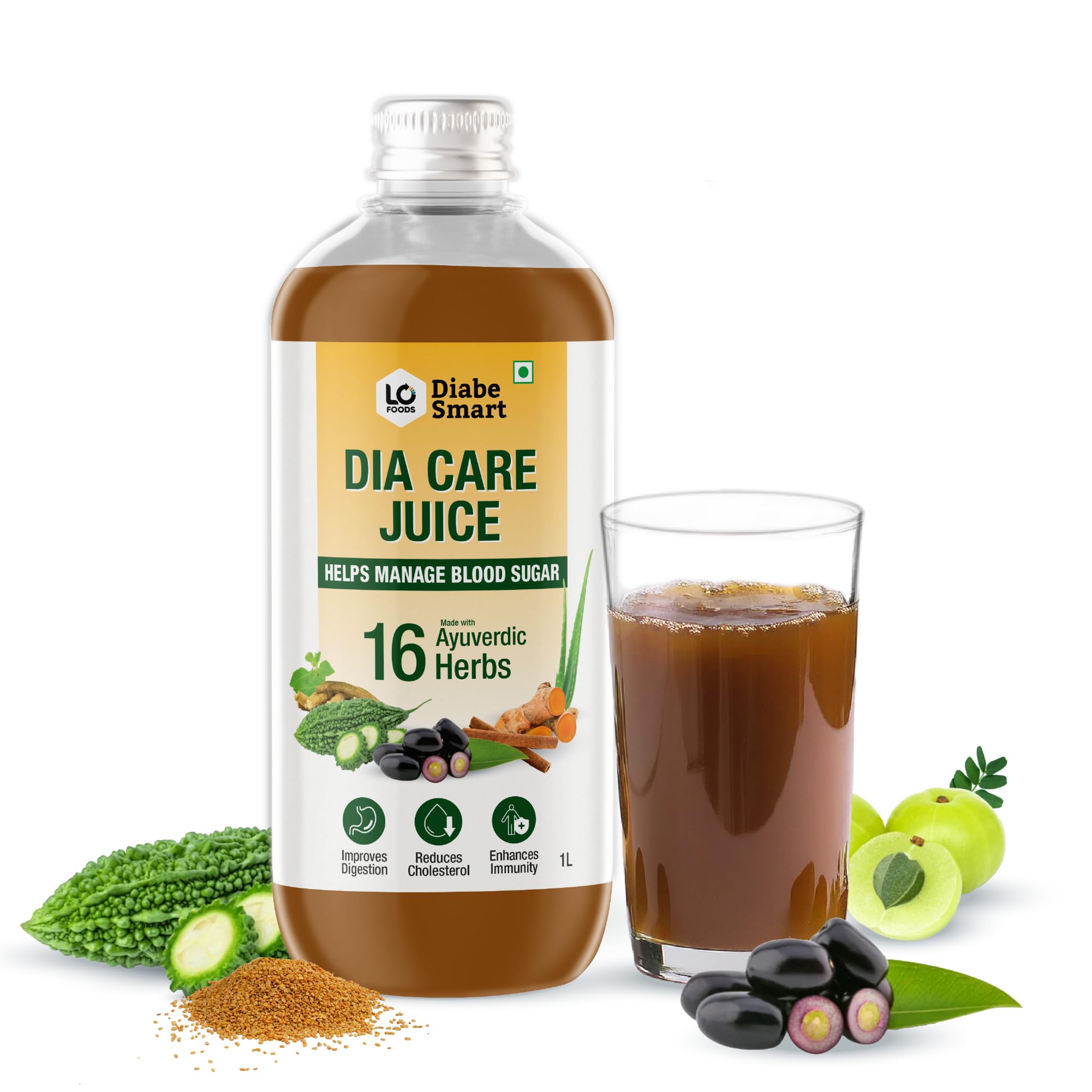 DiabeSmart Dia Care Juice 1L|Made with 16 Clinically Proven Natural Herbs| Only Diabetic Juice with Triphala & Turmeric| Karela Jamun Juice for Diabetes| Diabetic & Cholesterol Care Juice