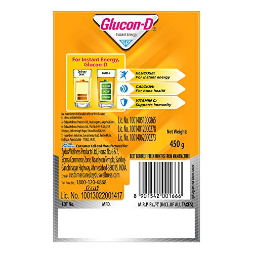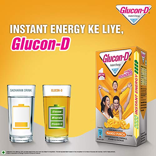 Summers can be daunting and especially when there's an enormous scorching sun always ready to drain out your energy and stop you from being the best of you. But thank god there is Glucon-D! Glucon-D contains glucose that helps replenish body glucose and fills you with the energy required to stay active. It is easily absorbed by the body thus giving out an instant energy boost and refreshment. Enriched with Vitamin-C and Minerals including Calcium and Phosphorus this glucose drink helps you charge up to fight tiredness and promotes mental alertness. What's better? Added Mango punch flavour makes it loved by children as well as adults. Add Glucon-D to a glass of water every day to provide growing active children the energy that keeps them going and adults refreshment after a long day. Note: Fruits are for creative depiction. Glucon-D does not contain fruits.